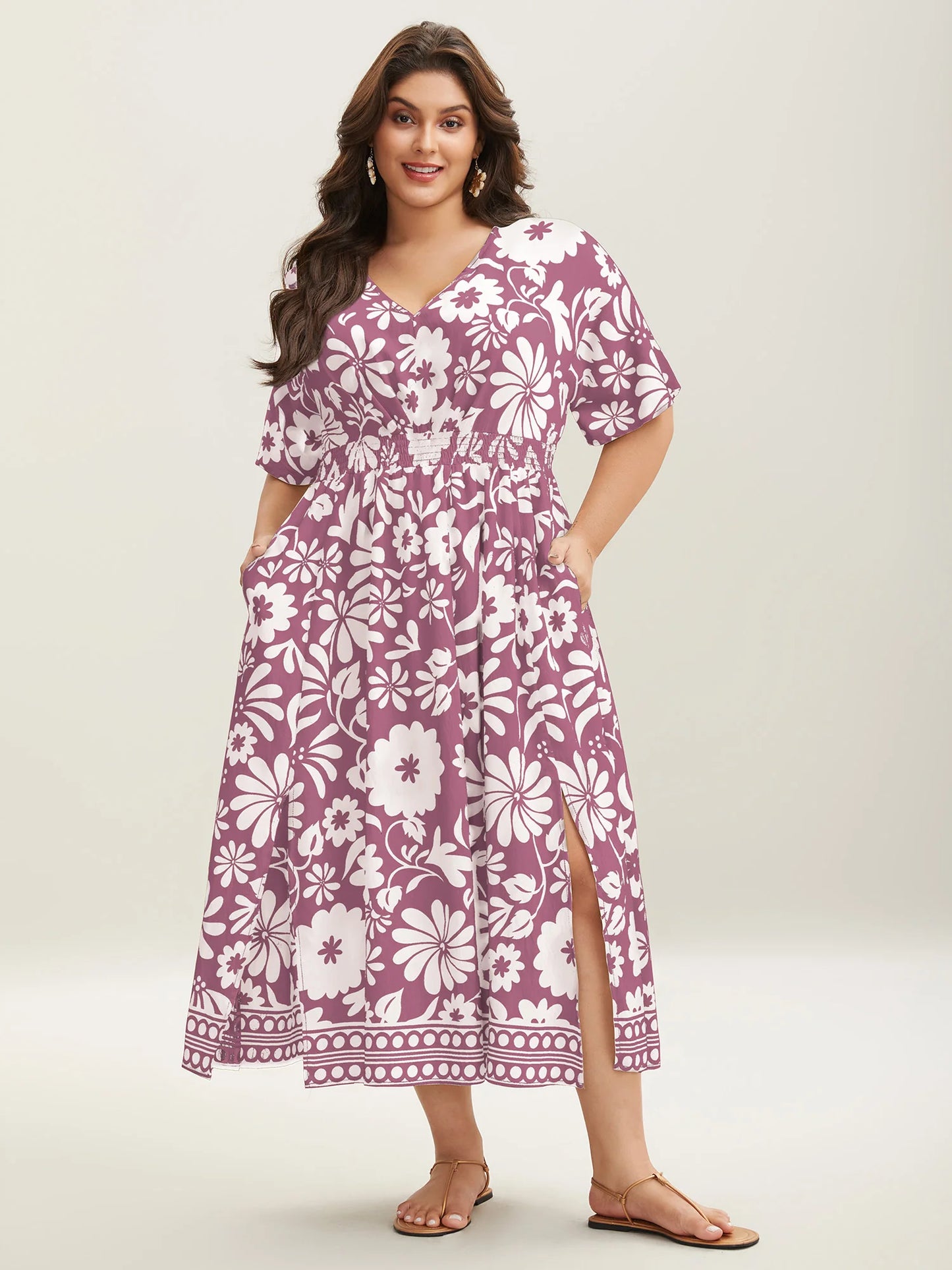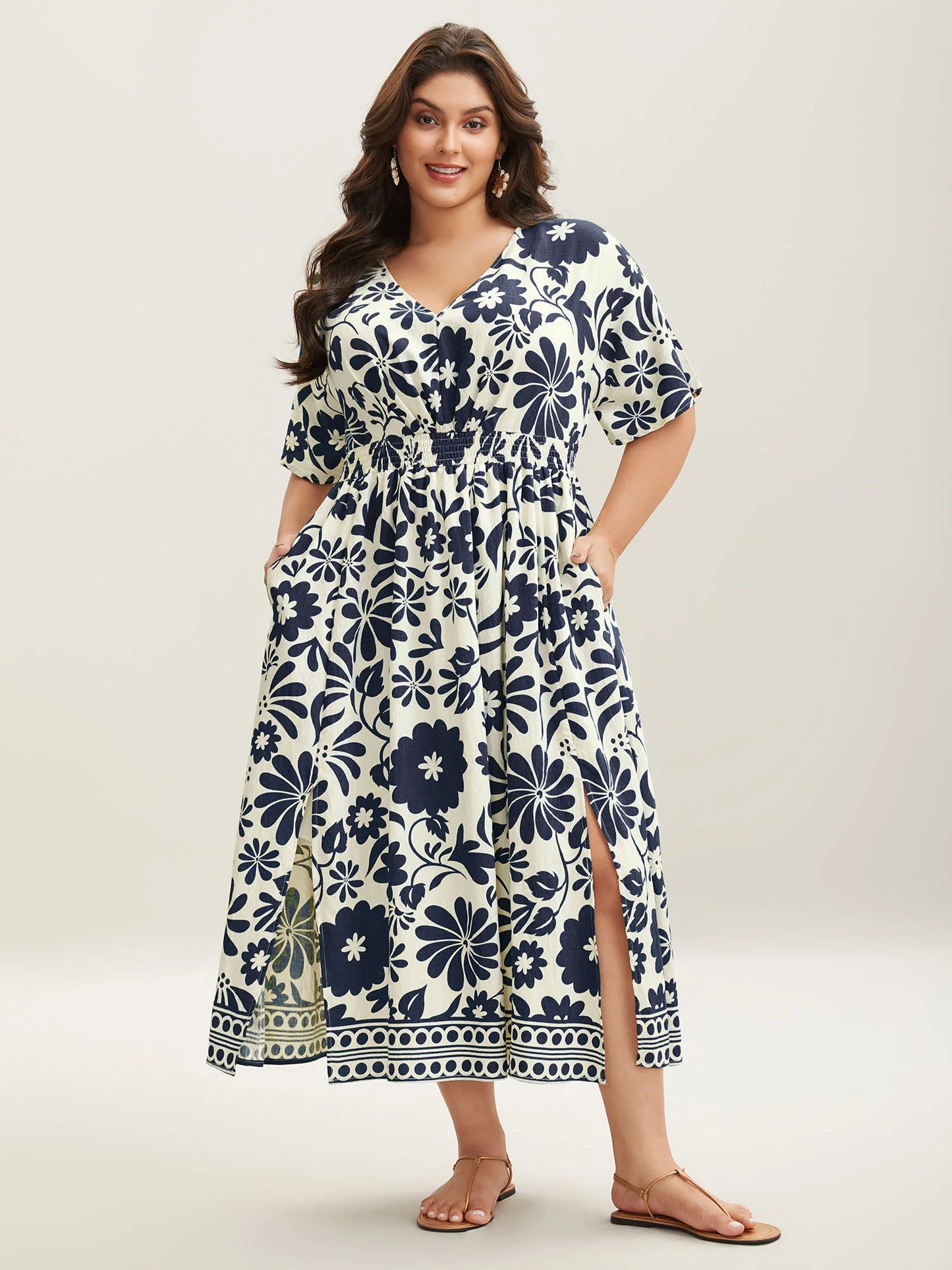 Large Floral Print Pockets Midi Dress