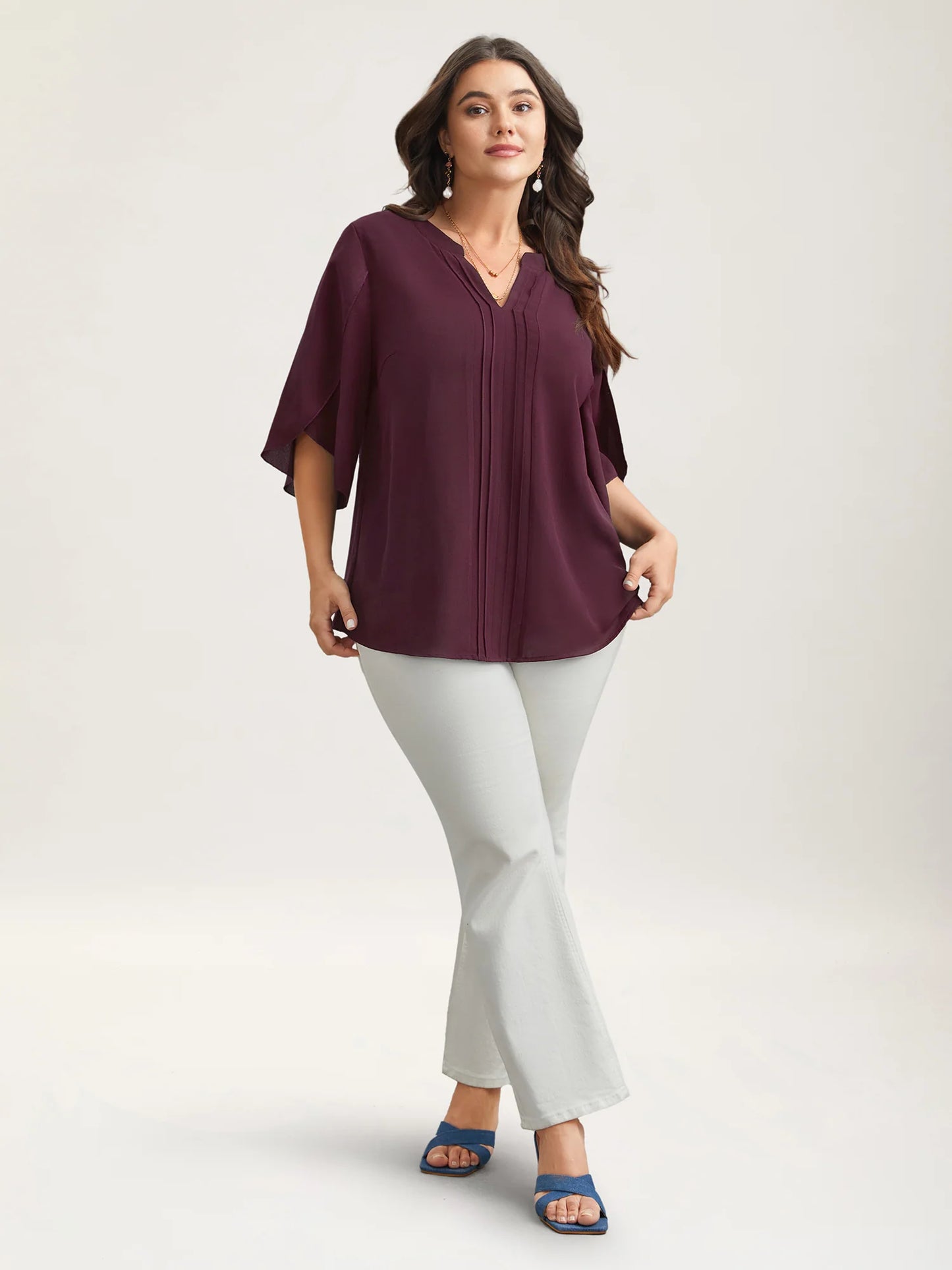 Petal Sleeve Toothpick Pleats Shirt