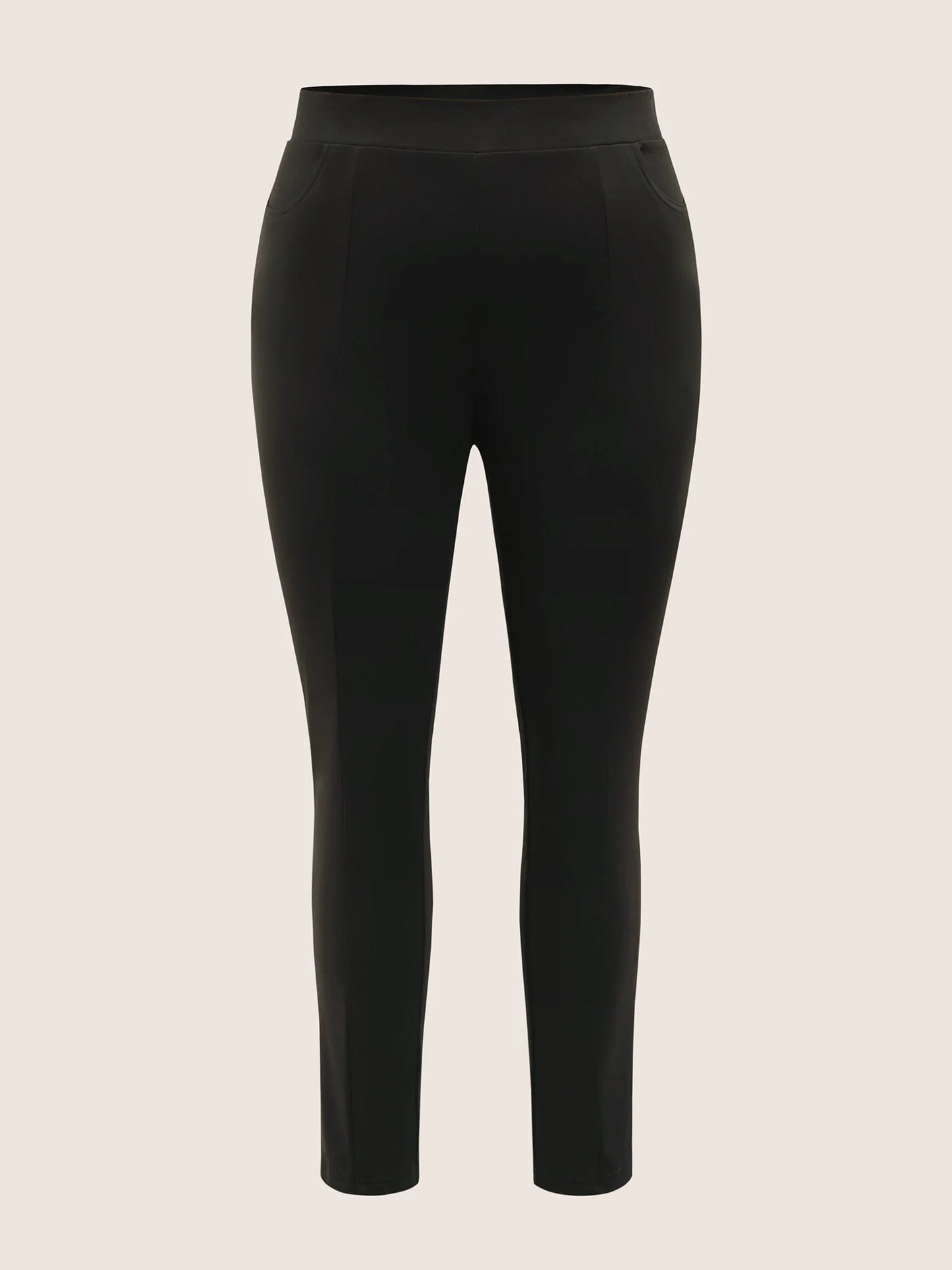 Plain Elastic Waist High Rise Slim Pants